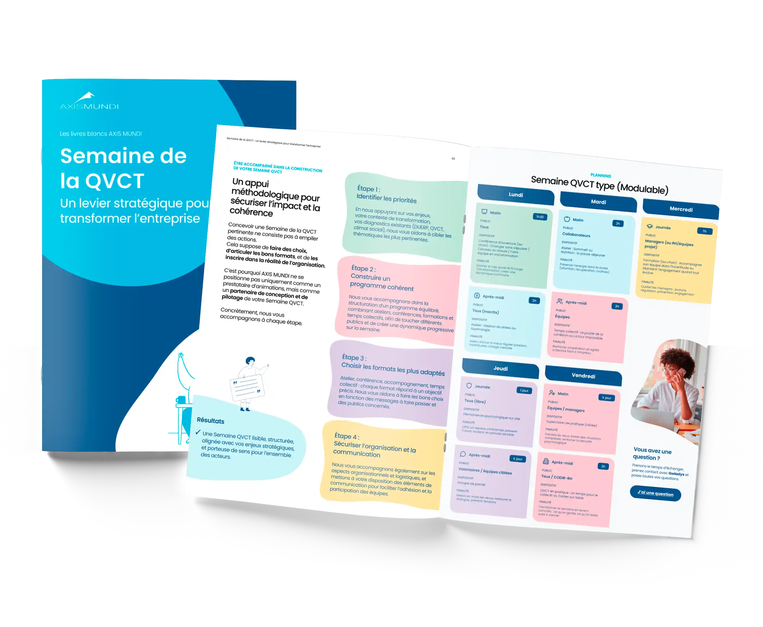 Pour vous accompagner, nous avons conçu un livre blanc opérationnel qui vous aide à structurer une Semaine QVCT cohérente, impactante et alignée avec vos enjeux. Vous y trouverez notamment :